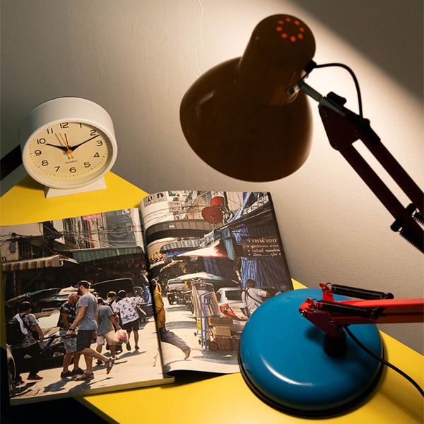 ヴィンテージライクなボディに、BANACOらしい3色のビビッドカラーをプラス。空間のアクセントになるUSBタイプのスタンドランプは、デスクにもベッドサイドにもぴったり。