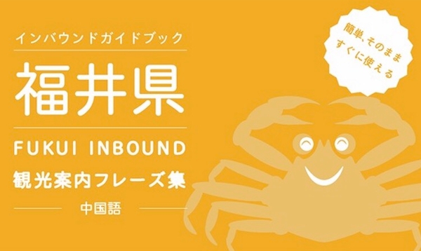 今回のebookは、福井県の観光案内フレーズ集<中国語編>とし、簡単ですぐお使いいただける内容となっております。また、表紙には福井県の特産品である越前ガニのイラストを配し、訪日外国人のお客様にもご覧いただきながら、コミュニケーションツールとしてご活用いただけるものとなっております。