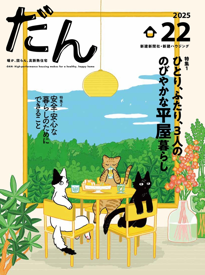 新建新聞社(東京都千代田区・長野県長野市)は、高断熱住宅がテーマの専門紙「だん」のシリーズ最新22号を2025年8月10日に発売。今号の特集は「ひとり、ふたり、3人ののびやかな平屋暮らし/安全・安心な暮らしのためにできること」。