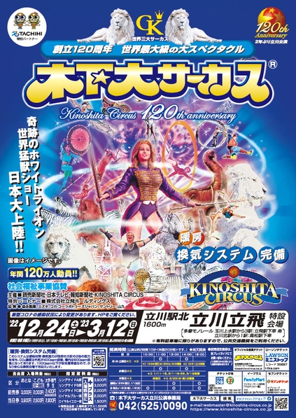 読売新聞社・日本テレビ・報知新聞社・KINOSHITA CIRCUS主催、『木下大サーカス 立川公演』が2022年12月24日 (土) ~2023年3月12日 (日)に立川駅北 立川立飛 特設会場(東京都立川市泉町935-27)にて開催されます。