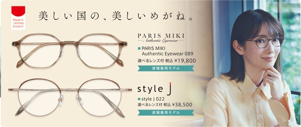 日本および地域への利益の還元を掲げ、商品のメガネフレームは「MADE IN JAPAN」にこだわり、エシカル消費を提唱いたします。近年のアジア産商品に押されながらも、高い技術力と品質を維持し続けている「日本のメガネ」を応援すべく、メガネの一大産地福井県鯖江市の企業・工場と連携し、オリジナル商品「style J」などを開発しています。店内の商品も日本製にこだわり、その高い品質の発信地となるべく、当社CMイメージキャラクター波瑠着用モデル 選べるレンズ付 税込¥19,800~ をはじめ、豊富に取り揃えております。
