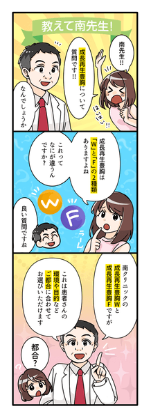 【マンガ】南クリニックが『教えて南先生!成長再生豊胸WとFはどっちがいいの?それぞれのメリットを詳しく解説!』を公開しました。