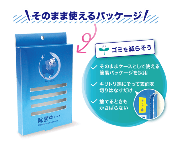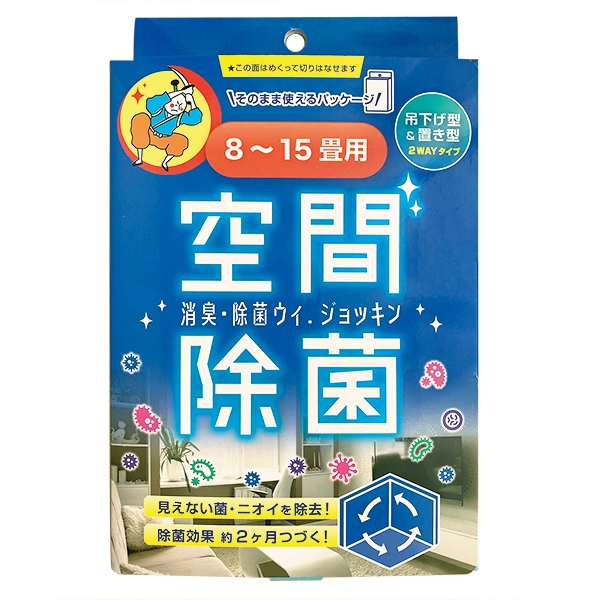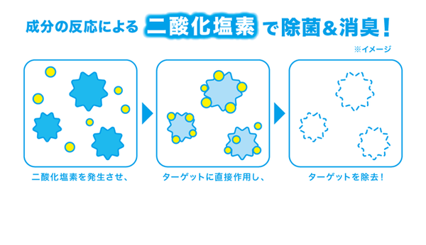成分の反応により、二酸化塩素を発生させ、空間内の除菌消臭に役立ちます。
