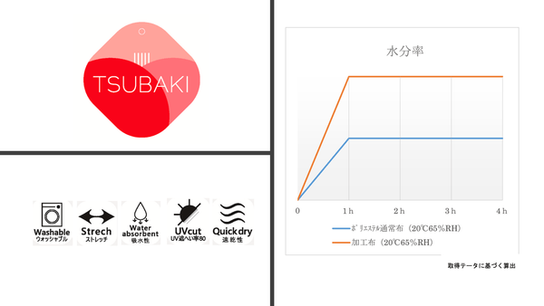 素材内面生地:ベージュ色 椿オイル保湿加工 ポリエステル 100%