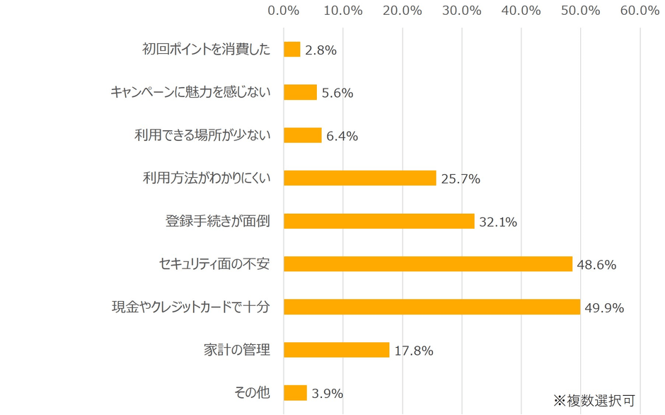 利用率だけでなく、スマホ決済を利用していないユーザーに対し、利用しない理由についても探りました。