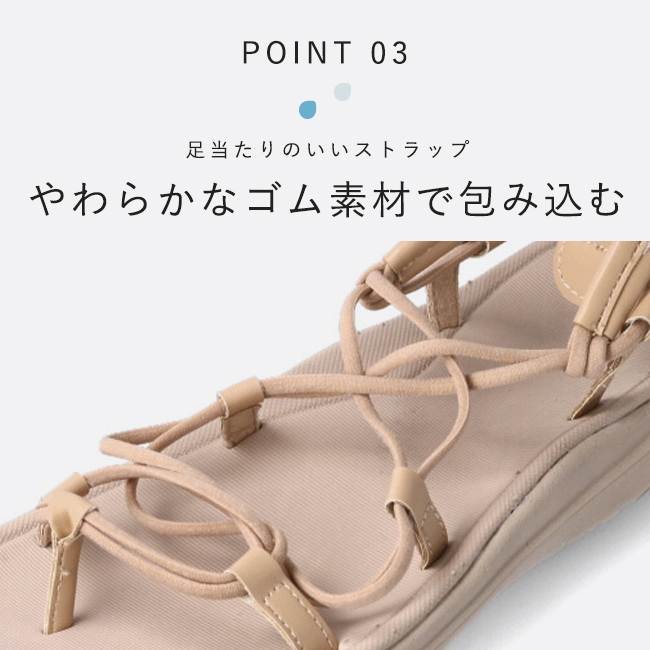 快適な履き心地を追求したストラップスポサンの登場です。 肌触りがよいストラップは締め付け感少なく脱げにくい、足を包み込むようなフィット感を追求しました。足のアーチに合わせてなだらかにカーブしているので足入れした途端に馴染む感覚です。