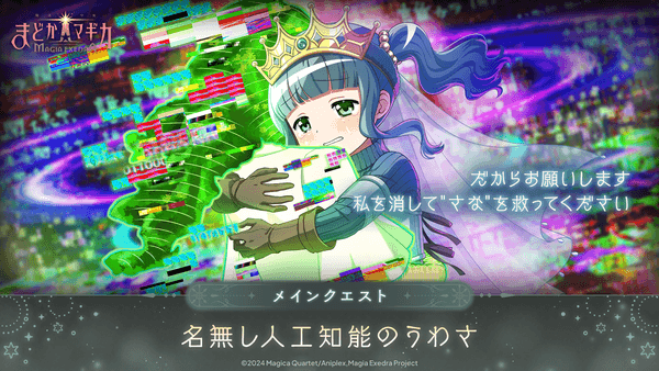 2025年4月11日(金)12:00より、メインクエストに新たな記憶の窓「名無し人工知能のうわさ」の追加を予定しております。ぜひマギアレコードのストーリーをお楽しみください。