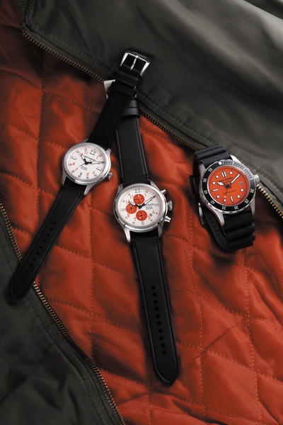 今回、JACKMASON から特に視認性なとが求められるダイバーズとアヴィエーションシリーズから、このRescue Orange から発想を得たコレクションが登場。クラシカルなデザインで視認性を確保しつつも、アーバンミリタリースタイルに合うモデルに仕上げました。発色のいいオレンジは、コーディネートのポイントとして使っていただけます。