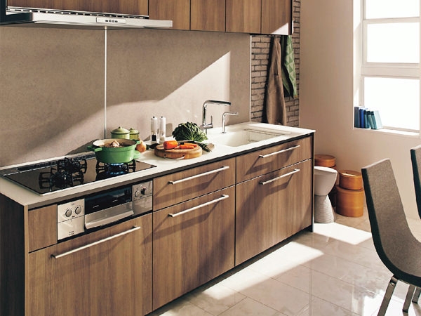 一部が壁になっているので煙や音の広がりも緩和出来、吊り戸棚の有無も選択する事も出来ます。