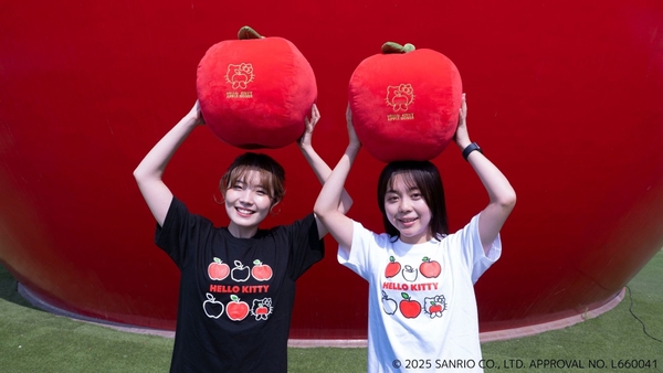 ハローキティのショーと食事が楽しめるシアターレストラン「HELLO KITTY SHOW BOX」では、カラフルなりんごが描かれたオリジナルTシャツや、もちもちとした触り心地のりんごクッションなど、ファン待望の新オリジナルグッズを7月10日(木)より順次販売いたします。