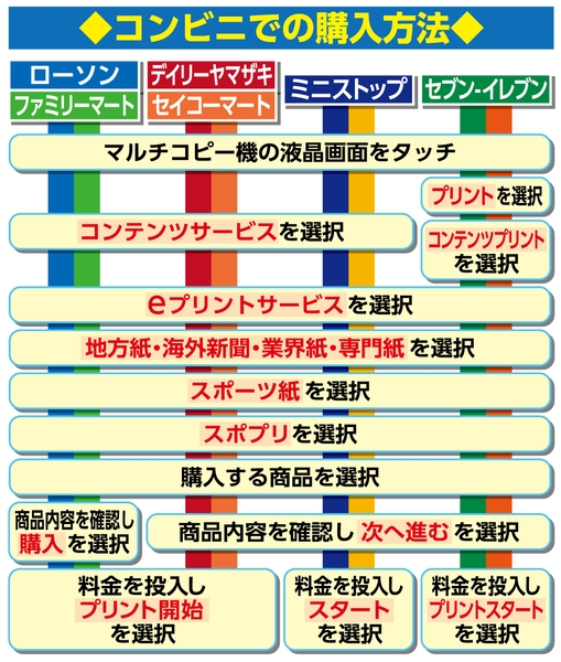スポーツニッポンでは、現在販売している大井競馬に加え、船橋、浦和、川崎の各場予想もコンビニ各社のプリントサービスで販売します。