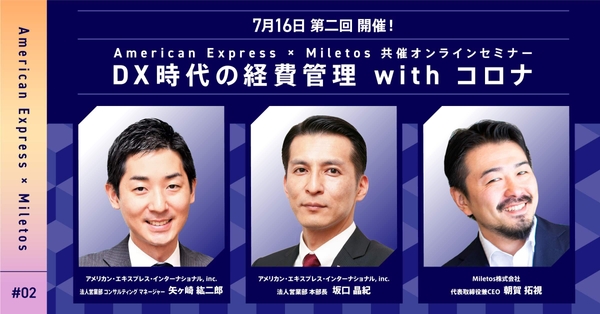 Miletos株式会社(本社:東京都目黒区、代表取締役社長兼CEO:朝賀拓視)は、アメリカン・エキスプレス・インターナショナル, Inc.(本社:東京都杉並区、日本社長:清原正治、以下、AMEX)とオンラインセミナー「DX時代の経費管理 withコロナ―AIによる不正検知ー」を2020年7月16日(木)11:00~12:00に共催します。