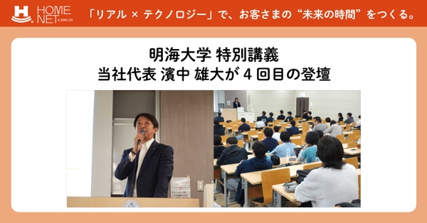 テクノロジーで気軽な住み替えをサポートする株式会社property technologies(以下「当社」)の代表取締役社長である濱中 雄大は、2025年5月12日(月)に学校法人明海大学(以下「明海大学」)の不動産学部『不動産経営戦略(教授:山本 卓)』の特別講義に外部講師として登壇しました。