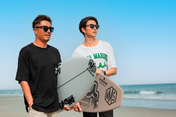 プロサーファーの経験を持ち、サーフィンの普及や海洋保護に尽力している萩原健太さんと、モデルとして活躍しながら、プロウェイクサーファーを目指し国際大会で戦う仁枝拳二さん。海を舞台に挑戦し続ける二人の姿に共感し、共に歩んでいくブランドアンバサダーに起用いたしました。