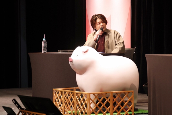本日、アニメ『豚のレバーは加熱しろ』のBlu-ray&DVDリリースを記念し[『豚のレバーは加熱しろ バレンタインイベント』が開催されました。イベントにはメインキャストである豚役の松岡禎丞さん、ジェス役の楠木ともりさんの2名が出演。作品の世界観を表すため、会場一面には床一面に敷かれた芝生が準備されました。またバレンタインデー直前ということもあり、イベントに参加した約200人のファンには、豚の記念チョコレートが入場時に配布されました。