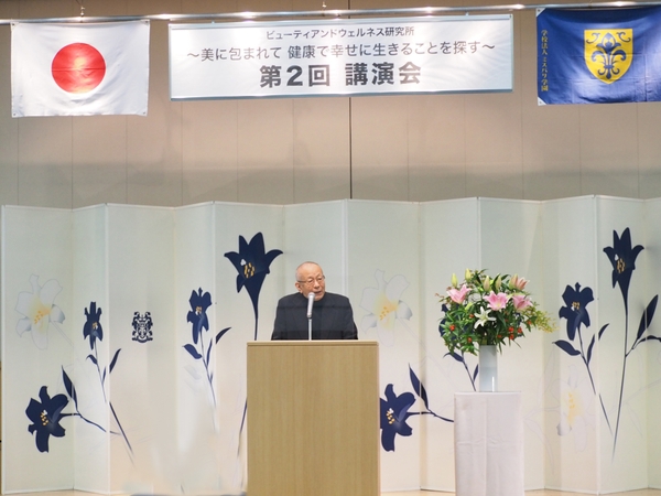 北里大学名誉教授で自由が丘美容クリニックの医師 塩谷信幸氏の講演では「アンチエイジング~美しく年を重ねる~」と題して、老いの原因や老化防止と若返りについてのお話がありました。また、幸福感はサイエンスできるもの(科学的な部分)と情緒的なものがあり、両方が大切であることや、人に必要とされることがQOL(Quality of Life)の核心であり、美とウェルネスが目指すところもまたQOLであると語られました。