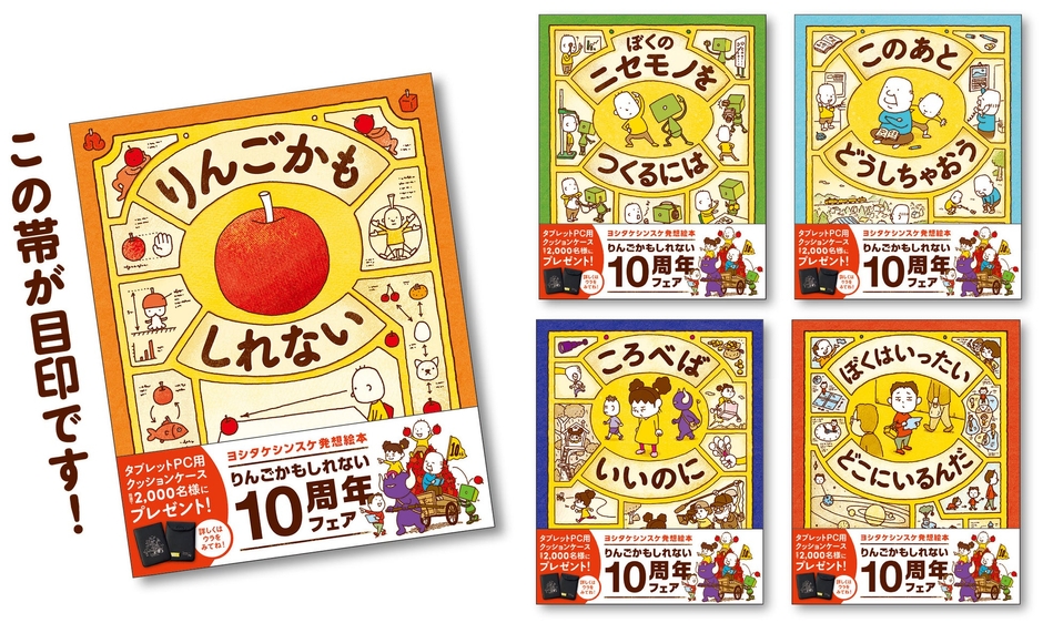 株式会社ブロンズ新社(所在地:東京都渋谷区、代表取締役:若月 眞知子)は、ヨシタケシンスケさんの絵本作家デビュー作『りんごかもしれない』が刊行10周年を迎えたことを記念し、オリジナルグッズが当たる読者プレゼントキャンペーンを、9月20日(水)より開催中です。