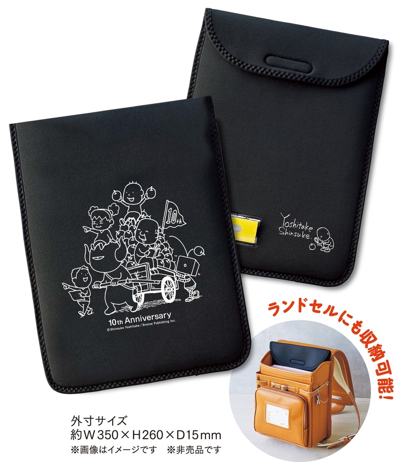今回のキャンペーンでは、『りんごかもしれない』にはじまるヨシタケさんの「発想絵本シリーズ」を購入した方の中から、抽選で2,000名様に、ヨシタケさん描きおろしのイラストが入った特製タブレットPC用クッションケースをプレゼントします。