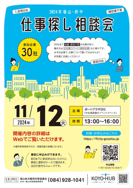 福山・府中の30社が参加する仕事探し相談会を開催します。