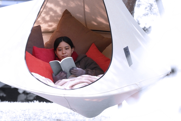 ■まるでクマの冬ごもり。あたたかなテント型ハンモック