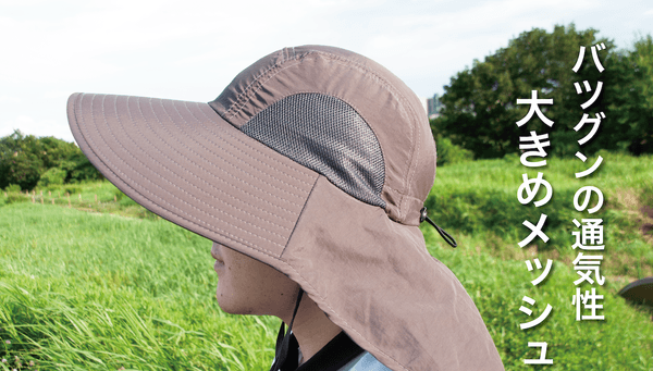 これまでの帽子の常識を覆す超ビッグサイズの作りとなっています。これにより後頭部から首筋までまるまる紫外線をカバーします。