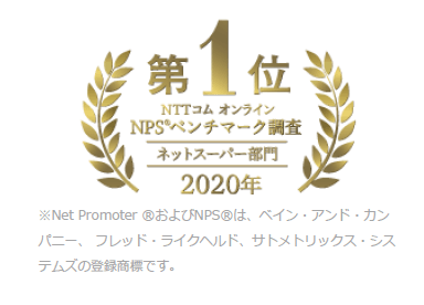 顧客ロイヤルティを測るNPS®ベンチマーク調査(NTTコム オンライン実施)において、「利便性の高さ」に加え、「欠品の少なさ」、「配送時間や料金の適切さ」などの項目について高い評価をいただき、総合で第1位を獲得いたしました。