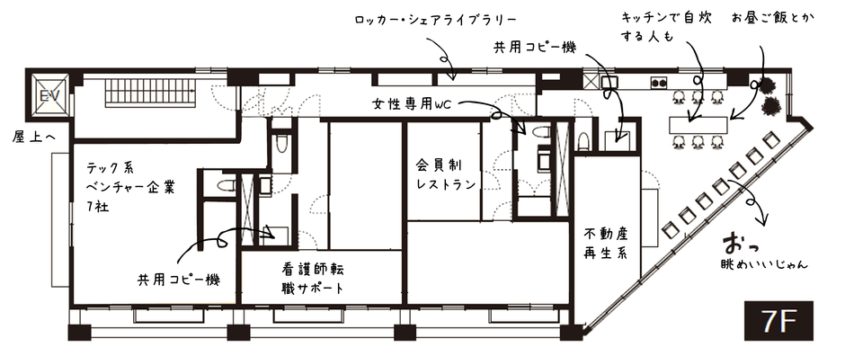 西麻布交差点近くのビル7階、共用ラウンジ・会議室・複合機、屋上バーカウンターもあります!