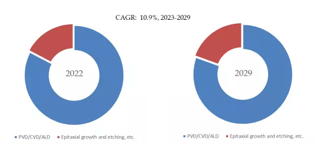 製品応用分野別では、半導体前駆体は現在主にALD、CVD、PVD、エピタキシャル成長、エッチングなどの半導体プロセスで使用されている。中でもALD/CVD/PVDが主な需要先であり、約80%のシェアを占めている。