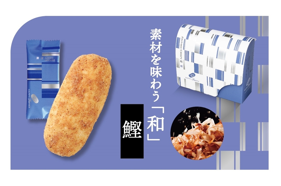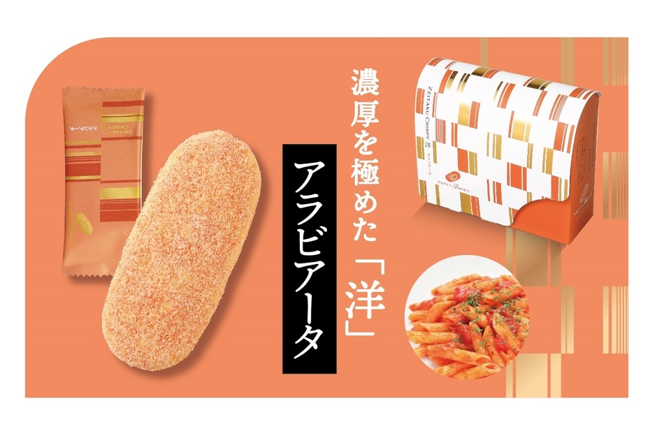 この度は、“贅沢クリスピー”の第二弾として、風味豊かな枕崎製の鰹節をふんだんにまぶした、口に広がるだしの風味と醤油の香ばしさが贅沢な味わいの『10個 ハッピーターンズ 和 鰹』、そして、イタリア産トマトパウダーの爽やかな酸味に、チキンの旨みやガーリックの香りが重なるコク深さが贅沢な味わいの『10個 ハッピーターンズ 洋 アラビアータ』を発売します。