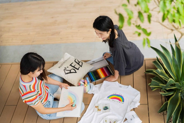 「居酒屋以上 旅未満」の体験を提供する「星野リゾート BEB5沖縄瀬良垣(ベブ)」では、2023年6月1日~7月15日の期間、「海風ひらひらTシャツスカイ」を開催します。パブリックスペースであるTAMARIBA(タマリバ)の一角に、本来捨てられるはずだった生地「残布」を活用したTシャツルーフアートが登場し、沖縄ならではの真っ青な空を彩ります。さらに、残布を活用した世界に一枚だけのオリジナルTシャツを作成できる体験も実施します。残布を活用した楽しい体験を通して、夏の気分をちょっと上げながら、ものの背景を考えるきっかけにもなるイベントです。