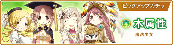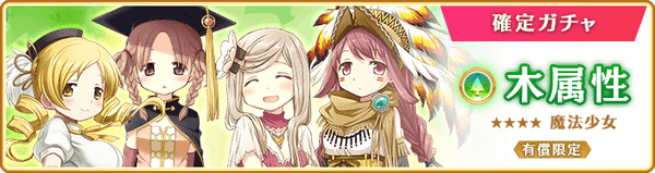 本ガチャでは、対象の木属性★4魔法少女のうち、いずれか1体が確定で登場いたします。