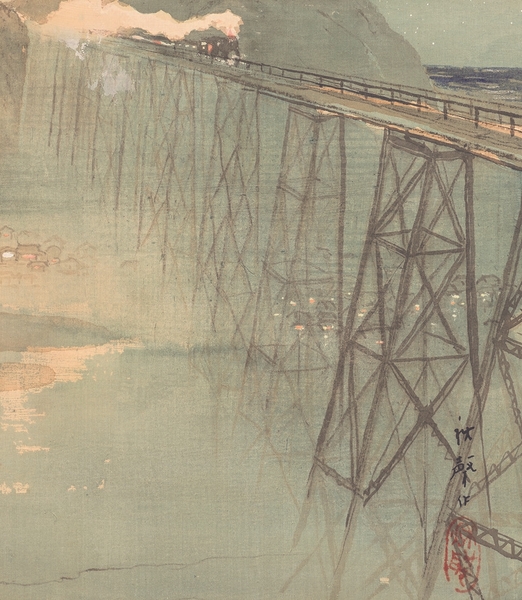 (左)小早川秋聲《裏日本所見画譜 余部の橋》1918(大正7)年 個人蔵