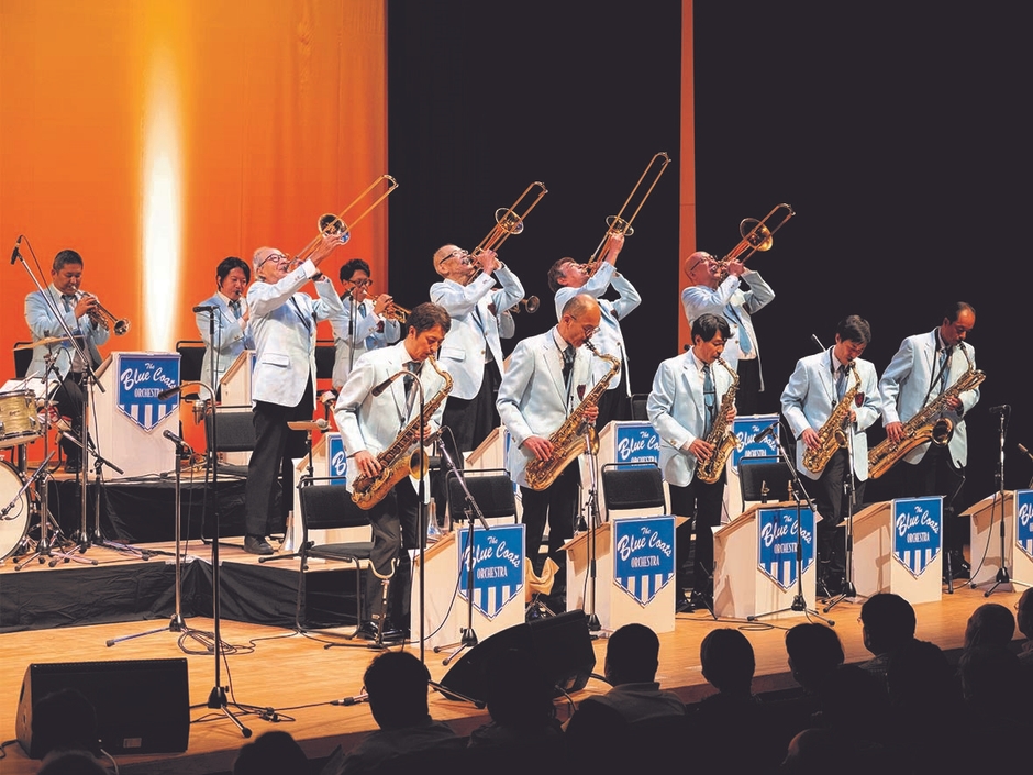 結成79年の伝統を誇るビッグバンドが映画音楽とジャズを演奏します。1946年に発足し、現在活躍中のビッグバンドの中で最も長い歴史と伝統を誇っており、黛敏郎、秋吉敏子ら数多くの著名音楽家を輩出しました。70年芸大出身の森寿男が三代目リーダーを、2023年には岩﨑敏信が四代目リーダーを引き継ぎ、カウントベイシー、デューク・エリントンの精神とフィーリングを追求し続けています。1995年グレン・ミラー・フェスティバルに招聘され、本場アメリカでも大好評を博しています。2004年「ジャズに情熱をかけた男たち ブルーコーツの70年」が出版され、南里文雄賞受賞。好評により再演が決定しました。