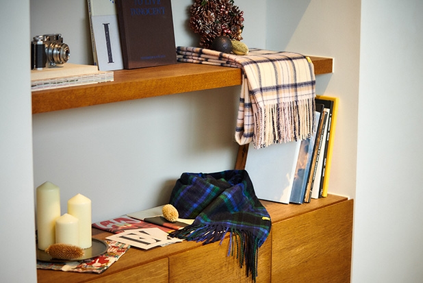 プレーンなトップスに組み合わせるだけで、単純なスタイリングでも様になるストール。