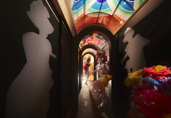 跳人は、頭に花笠、白い浴衣に赤やピンクのたすき、腰に黄色いシゴキを身に付け、掛け声をかけながら、跳ねる動きで祭りを盛り上げます。衣装を身に付けていれば、誰でも跳人として祭りに参加できるので、期間中にはのべ9万人が参加するといわれています(*2)。当客室には、跳人の衣装を用意しており、手順書を見ながら、自分で着付けできるようになっています。また、廊下の床に足跡が付いており、自然と跳人のステップを踏むことができます。インターフォンの音は「ラッセラー!」の掛け声になっており、祭りの臨場感を演出します。