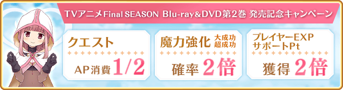 ▼TVアニメFinal SEASON Blu-ray&DVD第2巻発売記念ログインボーナス
