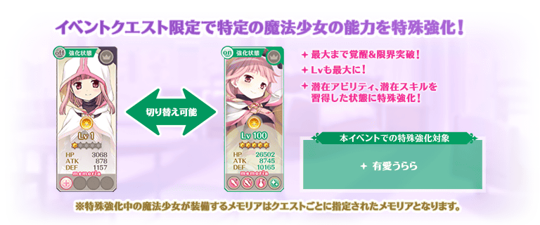 ※「ステータス特殊強化」は対象の魔法少女以外には適用されません。