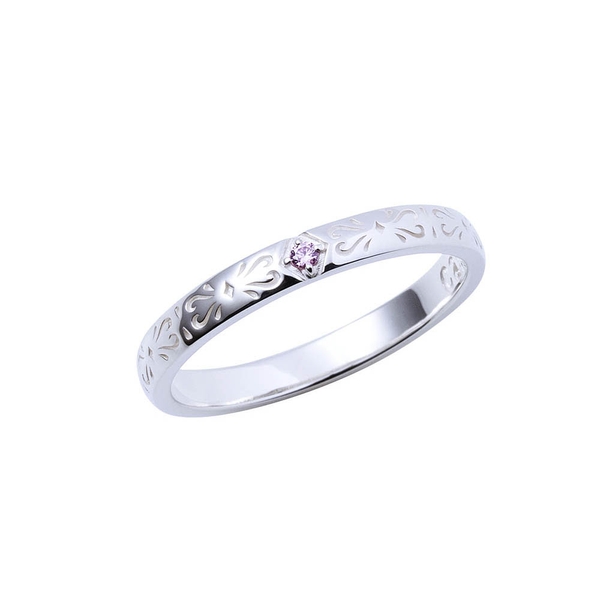 表面にはユニットをイメージした可愛らしい模様をデザイン、中央にはユニットカラーストーンをセットし、内側にはユニット名を刻印しました。Café Paradeの世界観を取り込んだ甲丸フォルムのデザインです。