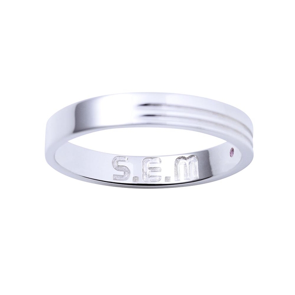 表面にはシンプルなラインをデザイン、中央にはユニットカラーストーンをセットし内側にはユニット名を刻印しました。S.E.Mの世界観を取り込んだ平打ちフォルムのデザインです。