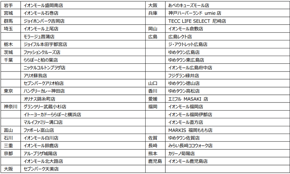 ※球場などの特設店舗、デリバリー専門店では未実施となります。