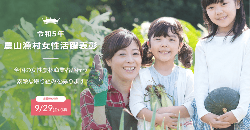 農林水産業における女性活躍推進に貢献する活動を表彰 「令和5年度農山漁村女性活躍表彰」エントリー受付開始