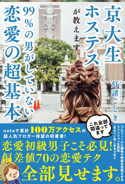 noteで人気の京大生ホステス・灯諸こしきさん初の著書『京大生ホステスが教えます。99%の男がしていない恋愛の超基本』が7月15日発売!cakesで本日より先行公開