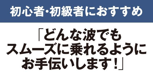 波に乗るために必要な動きの習得は時間がかかります。上達の秘訣は、ボードの上で出来るだけシンプルに動けるようになることです。初心者が犯しがちな間違いや改善点を的確に指導することで、上達のスピードアップを図ります。