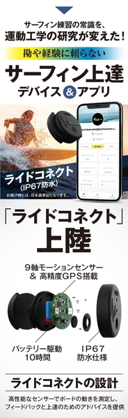 週末サーファーにお薦め 仏で開発 スマートコーチ機能でサーフィンを上達させるアクショントラッカー「ライドコネクト」を日本販売開始 (スノーボード、スケートボードも対応)