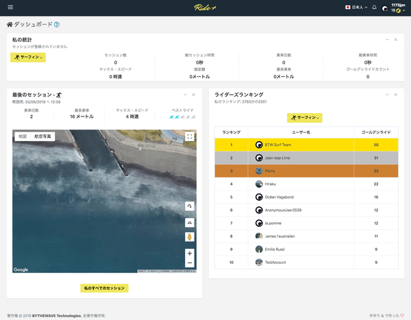 フランスのサーフィンのメッカ、ソール=オスゴールにあるBYTHEWAVETechnologies社は、8歳からサーフィンを始め、パリ国立工芸大学大学院で運動工学とロボット工学で博士号を取得したKevinによって2015年に設立されました。2014年の研究着手から4年、2018年10月にライドコネクトが開発されました。欧州60%米国20%豪州10%と世界中のユーザーに広がっており、満を持して今回日本上陸です。