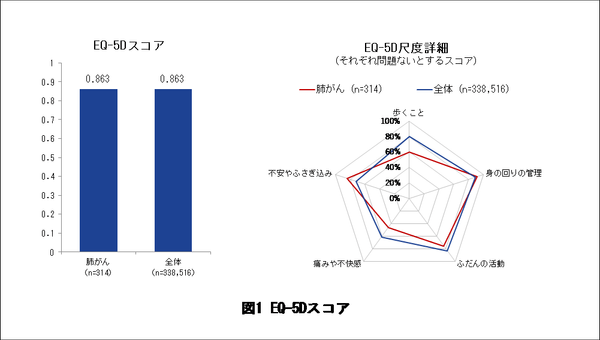 肺がんで1年以内に入通院歴のある患者さんのQOLは、スコアにすると一般生活者と同程度で