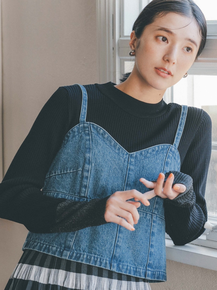 ●デザイン:レイヤードスタイルで一気におしゃれ指数がアップするビスチェ。トレンドのシアー素材のインナーと合わせるのもおすすめです。