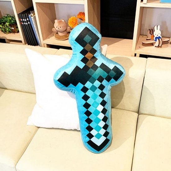 リビングが冒険の場に?!突然のマイクラごっこにも対応すべく、ダイヤモンドの剣とツルハシをクッションとして装備しよう☆
