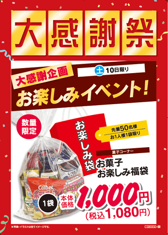 ※お楽しみ袋各種は数量限定のため、売り切れの際はご容赦ください。
