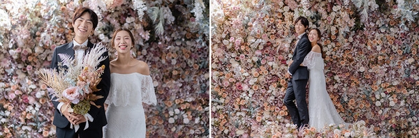 カラーのほか、立川店のフラワースタジオの特徴として、壁の上部にもお花のボリュームを持たせていることで、より立体感が生まれ、正面に限らず上からや横からといった、あらゆる角度で表情を変えて撮影をお楽しみいただけます。